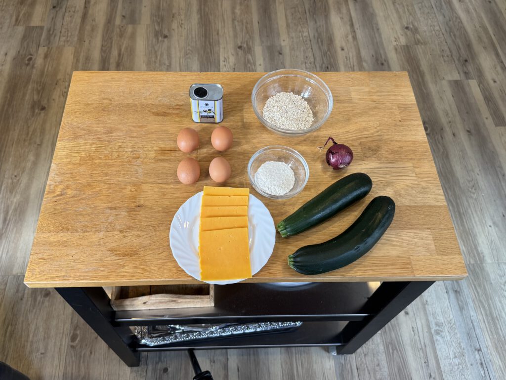Nun ja – einiges. Statt die Zucchini zu raspeln, wurde sie kurzerhand mit einem Brotmesser klein geschnippelt, und weil keine Waage zur Hand war, wurden die Zutatenmengen einfach geschätzt.